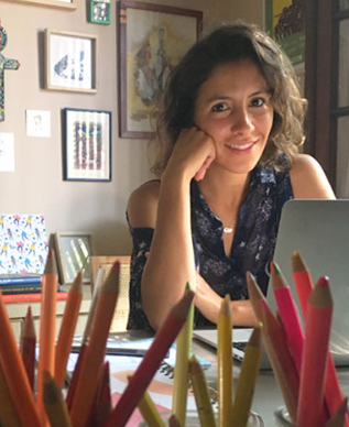 Nació en Buenos Aires (Argentina) donde actualmente vive. Pasa el tiempo imaginando mundos, personajes y escenarios. Cada libro que hace es una invitación a probar nuevos trazos y colores.